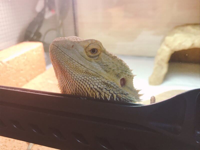 また、バスキングスポットから離れた場所にいるのに長時間口を開けている場合は室温が高すぎる可能性もあります。暑すぎる空間に長時間いれば爬虫類も熱中症になることがあるので温度設定には要注意です。フトアゴ本人や温度計をよく観察しながら、室温が高すぎる場合は、暖突や保温球、エアコンなどを切ったりして調整してあげると良いと思います。