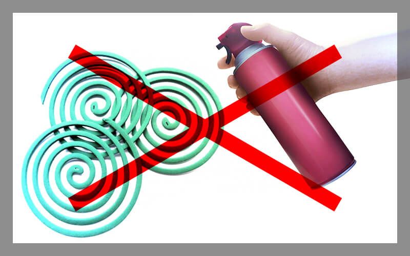 一般家庭でもよく使われている渦巻型の蚊取線香や電気蚊取り(マット式・液体式のもの)、虫除け、殺虫剤などには、「ピレスロイド」という成分が含まれており、ピレスロイドが虫の体内に入ると神経系に作用して殺虫効果を発揮します。ピレスロイドは選択毒性といって特定の生き物にしか効かず、人や哺乳類・鳥類の場合は代謝により尿などですぐに体外に排出されるため影響はないとされています。
